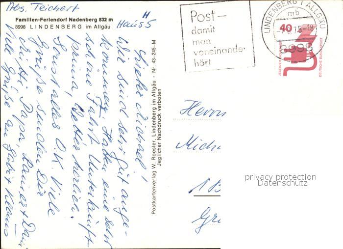 72583312 alte Postkarte Lindenberg Allgaeu Familien Feriendorf Nadenberg postalisch gelaufen Erhaltung siehe scans [LiesaD40] KatCode: 11110009776117