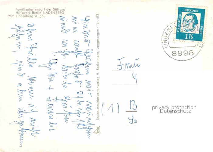 72785713 alte Postkarte Lindenberg Allgaeu Feriendorf der Stiftung Hilfswerk Berlin Nadenberg postalisch gelaufen Erhaltung siehe scans [LiesaD40] KatCode: 11110009776117
