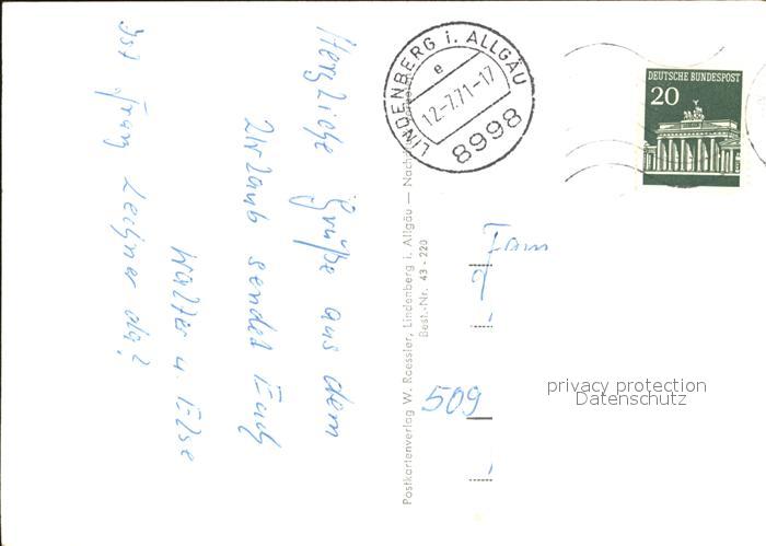 72208750 alte Postkarte Lindenberg Allgaeu Feriendorf Krankenhaus Pfarrkirche Waldsee postalisch gelaufen Erhaltung siehe scans KatCode: 11110009776117