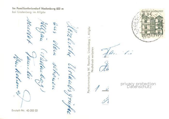 73321165 alte Postkarte Lindenberg Allgaeu Feriendorf Nadenberg Winterlandschaft postalisch gelaufen Erhaltung siehe scans [FriedD77] KatCode: 11110009776117