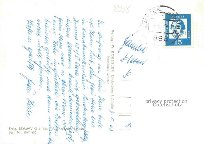 74101636 alte Postkarte Lindenberg Allgaeu Fliegeraufnahme postalisch gelaufen Erhaltung siehe scans [WerneD78] KatCode: 11110009776117