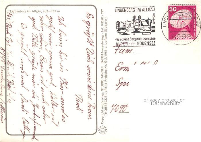 73226932 alte Postkarte Lindenberg Allgaeu Fliegeraufnahme postalisch gelaufen Erhaltung siehe scans [LiesaD40] KatCode: 11110009776117