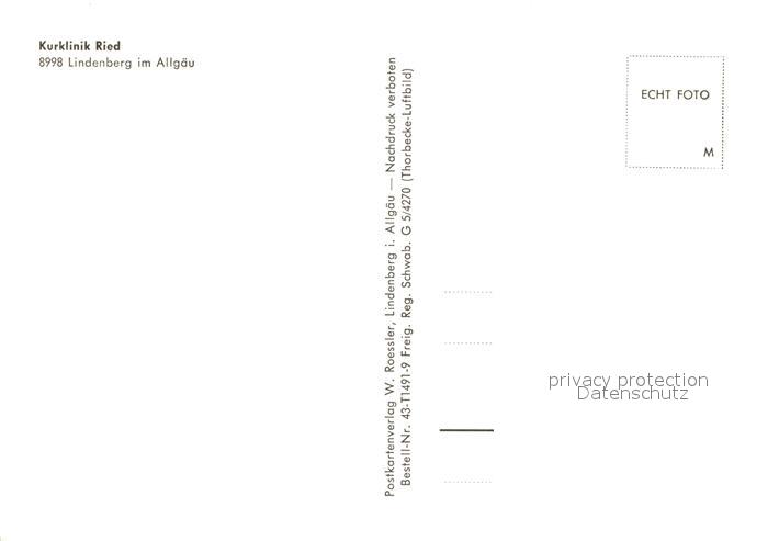73117050 Lindenberg Allgaeu Fliegeraufnahme Kurklinik Ried postalisch nicht gelaufen Erhaltung siehe scans [LiesaD40] KatCode: 11110009776117