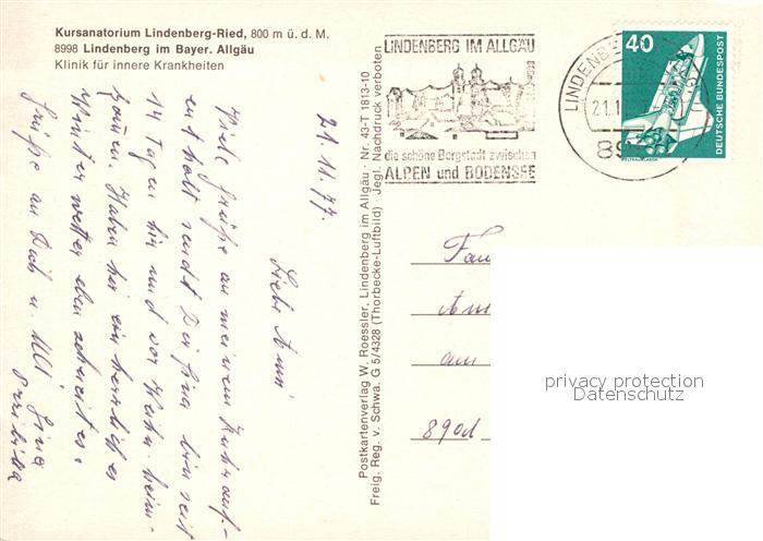 73181710 alte Postkarte Lindenberg Allgaeu Fliegeraufnahme mit Kursanatorium Lindenberg Ried postalisch gelaufen Erhaltung siehe scans [WerneD78] KatCode: 11110009776117