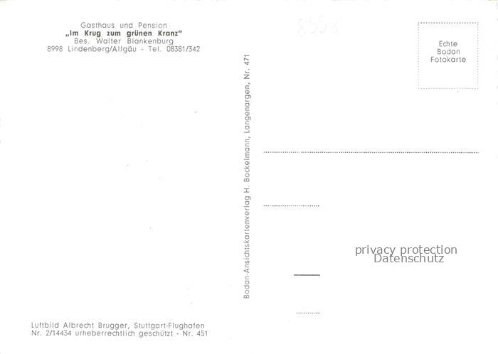 74101616 Lindenberg Allgaeu Fliegeraufnahme mit Waldsee Hotel Gasthaus Im Krug zum gruenen Kranz und Strandbad postalisch nicht gelaufen Erhaltung siehe scans [WerneD78] Wern Katcode 11110009776117