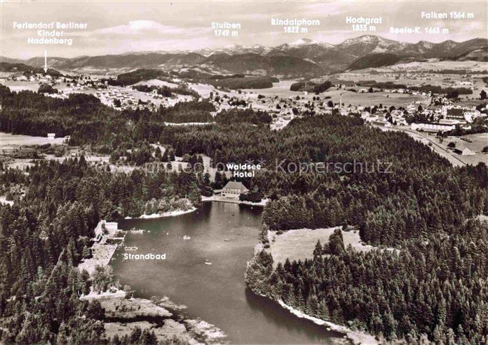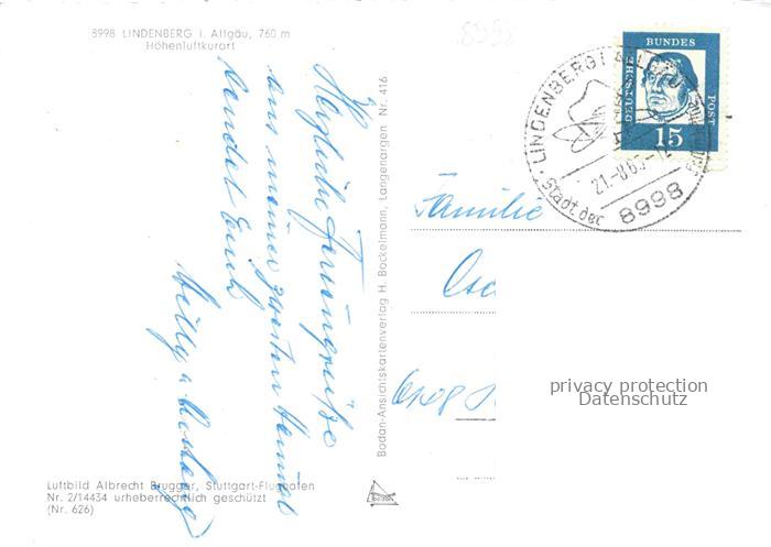 74101617 alte Postkarte Lindenberg Allgaeu Fliegeraufnahme mit Waldsee Hotel Gasthaus Im Krug zum gruenen Kranz und Strandbad postalisch gelaufen Erhaltung siehe scans [WerneD78] KatCode: 11110009776117