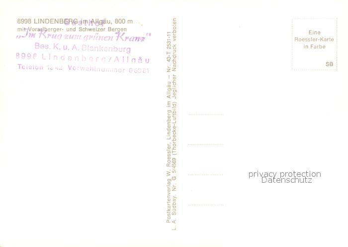 73726087 Lindenberg Allgaeu Fliegeraufnahme Panorama m. Voralrsberger u. Schweizer Bergen postalisch nicht gelaufen Erhaltung siehe scans [LiesaD40] KatCode: 11110009776117