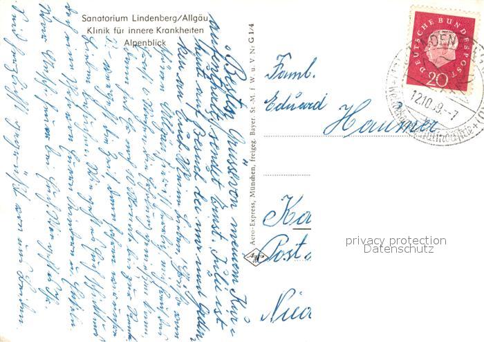 73290768 alte Postkarte Lindenberg Allgaeu Fliegeraufnahme Sanatorium Lindenberg Alpenblick postalisch gelaufen Erhaltung siehe scans [WerneD78] KatCode: 11110009776117