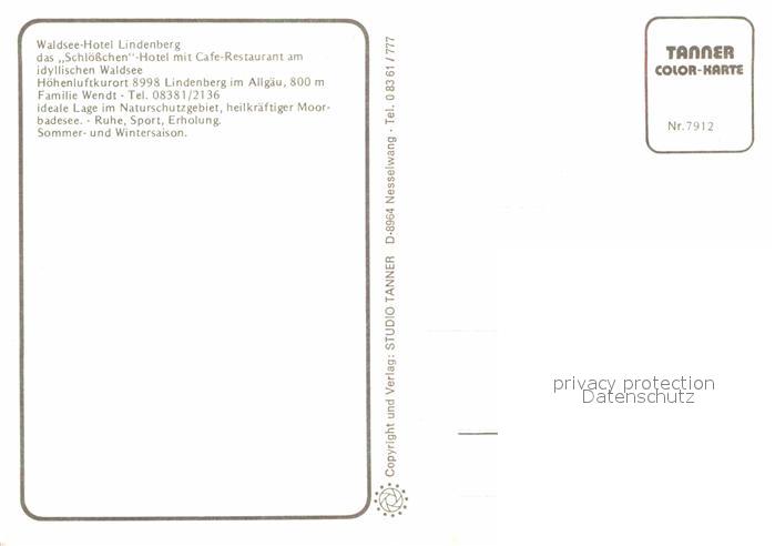 72667598 Lindenberg Allgaeu Fliegeraufnahme Waldsee Hotel postalisch nicht gelaufen Erhaltung siehe scans [AndreD76] KatCode: 11110009776117
