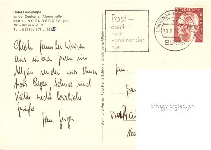 73689550 alte Postkarte Lindenberg Allgaeu Hotel Lindenalpe Pool postalisch gelaufen Erhaltung siehe scans [WerneD78] KatCode: 11110009776117
