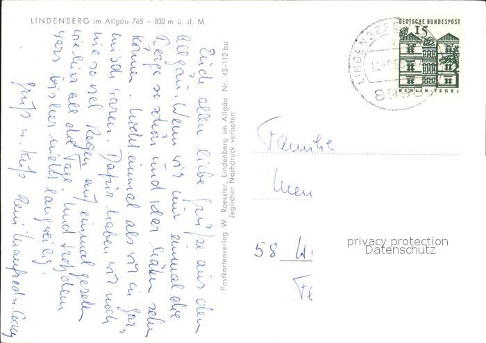 72574594 alte Postkarte Lindenberg Allgaeu Kirche Ansicht postalisch gelaufen Erhaltung siehe scans [KathaD79] KatCode: 11110009776117