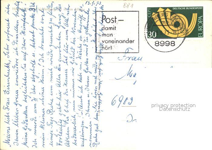 72603369 alte Postkarte Lindenberg Allgaeu Ortsansicht mit Kirche Hoehenluftkurort Alpenkette Kuehe postalisch gelaufen Erhaltung siehe scans [FriedD77] KatCode: 11110009776117