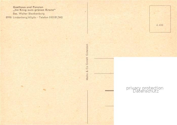 33043431 Lindenberg Allgaeu Restaurant Cafe Imbissstube Im Krug zum gruenen Kranz postalisch nicht gelaufen Erhaltung siehe scans [KathaD81] KatCode: 11110009776117