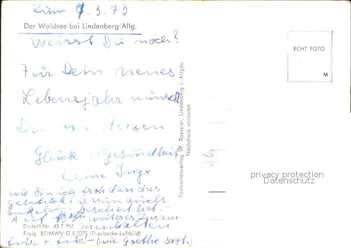 72433526 alte Postkarte Lindenberg Allgaeu Waldsee Fliegeraufnahme postalisch gelaufen Erhaltung siehe scans KatCode: 11110009776117