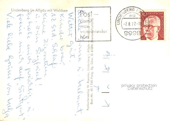 72972433 alte Postkarte Lindenberg Allgaeu Waldsee Fliegeraufnahme postalisch gelaufen Erhaltung siehe scans [NatalD47] KatCode: 11110009776117