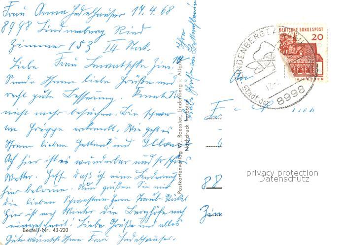 73283018 alte Postkarte Lindenberg Allgaeu Waldsee Pfarrkirche Feriendorf Krankenhaus postalisch gelaufen Erhaltung siehe scans [LiesaD40] KatCode: 11110009776117