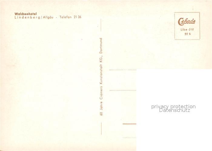73651751 Lindenberg Allgaeu Waldseehotel postalisch nicht gelaufen Erhaltung siehe scans [WerneD78] KatCode: 11110009776117