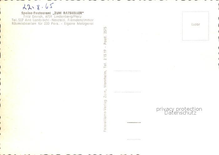 32184576 Lindenberg Pfalz Speise- Restaurant Zum Ratskeller postalisch nicht gelaufen Erhaltung siehe scans KatCode: 11110007332034