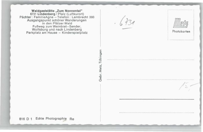 40701772 Lindenberg Pfalz Wald Gaststätte Zum Nonnental KatCode 11110007332034