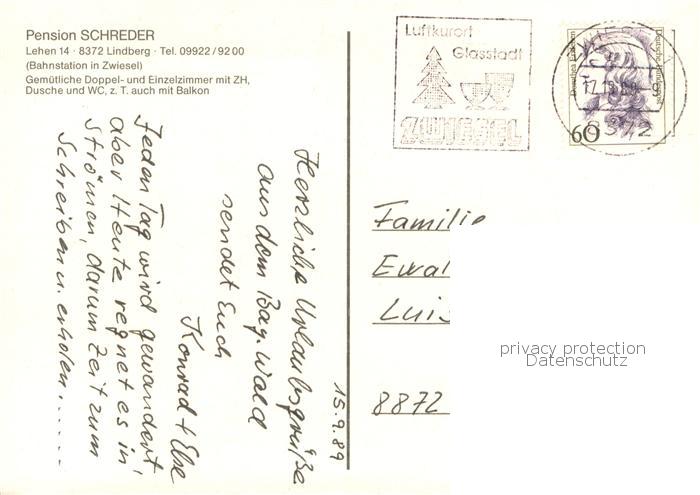 73760433 alte Postkarte Lindenberg Zwiesel Pension Schreder postalisch gelaufen Erhaltung siehe scans [FriedD77] KatCode: 11110009276148
