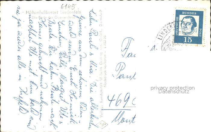 72101050 alte Postkarte Lindenfels Odenwald postalisch gelaufen Erhaltung siehe scans KatCode: 11110006431015