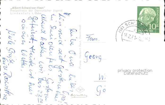 72096988 alte Postkarte Lindenfels Odenwald Albert Schweitzer Haus Freizeitheim postalisch gelaufen Erhaltung siehe scans KatCode: 11110006431015