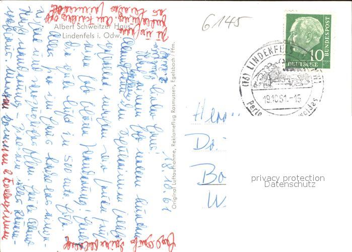 41576453 Lindenfels Odenwald Albert Schweitzer Haus Freizeitheim der Darmstädter Jugend Fliegeraufnahme KatCode 11110006431015