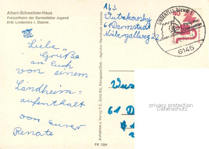 73734107 alte Postkarte Lindenfels Odenwald Albert-Schweitzer-Haus Teilansichten postalisch gelaufen Erhaltung siehe scans [LiesaD40] KatCode: 11110006431015