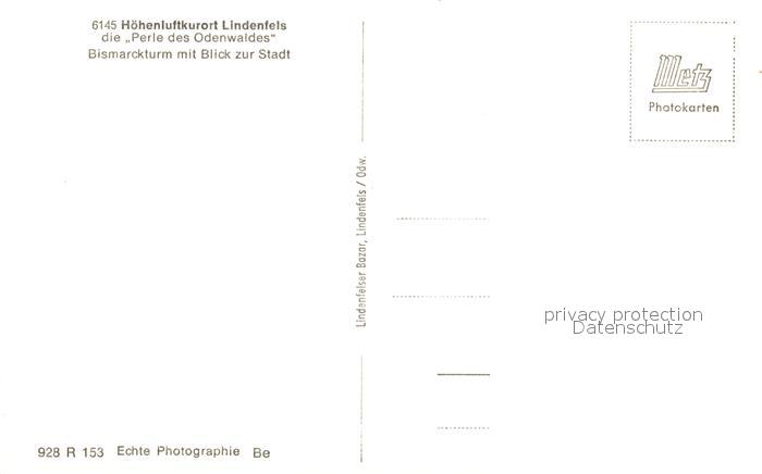 73259328 Lindenfels Odenwald Bismarckturm postalisch nicht gelaufen Erhaltung siehe scans [NatalD47] KatCode: 11110006431015