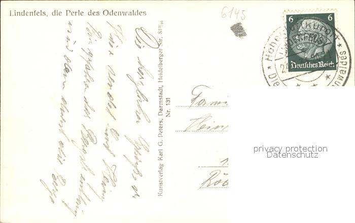 72098538 alte Postkarte Lindenfels Odenwald Bismarckwarte Schwimmbad Blick von der Burg postalisch gelaufen Erhaltung siehe scans KatCode: 11110006431015