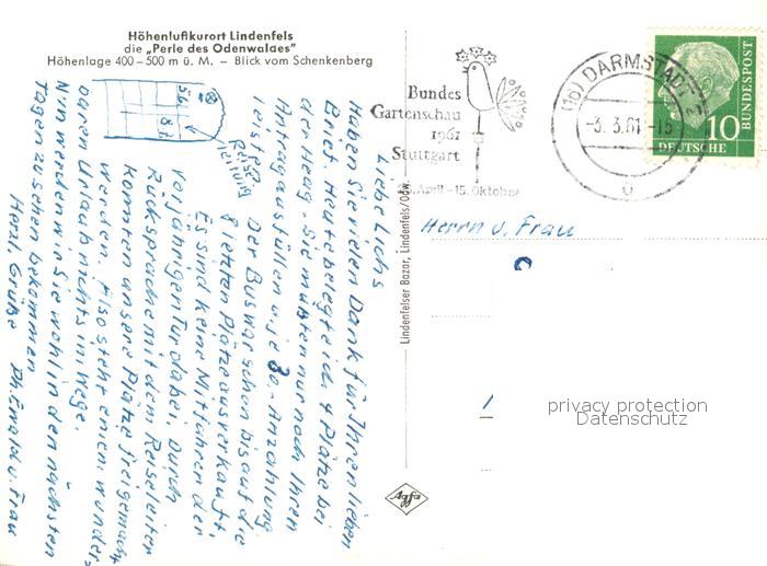 73116156 alte Postkarte Lindenfels Odenwald Blick vom Schenkenberg postalisch gelaufen Erhaltung siehe scans [NatalD47] KatCode: 11110006431015