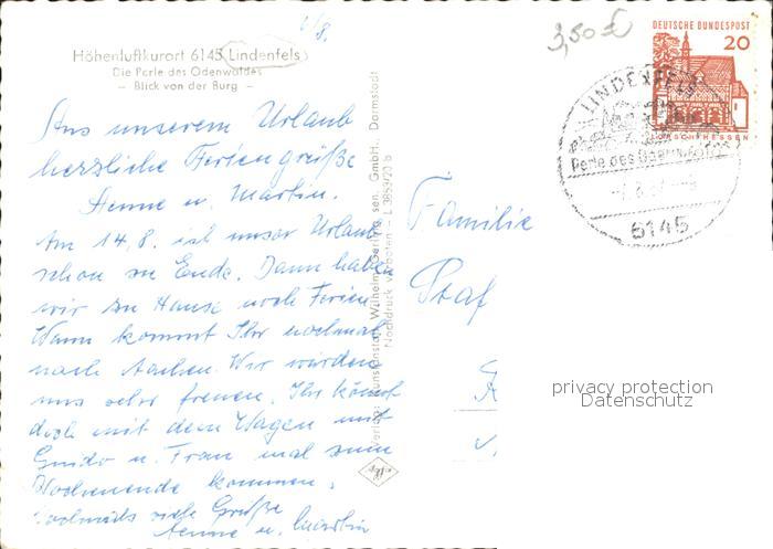 72315493 alte Postkarte Lindenfels Odenwald Blick von der Burg postalisch gelaufen Erhaltung siehe scans KatCode: 11110006431015