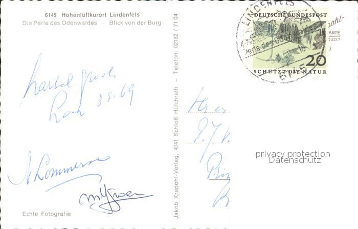 72074757 alte Postkarte Lindenfels Odenwald Blick von der Burg Kirche Hoehenluftkurort Perle des Odenwaldes postalisch gelaufen Erhaltung siehe scans KatCode: 11110006431015