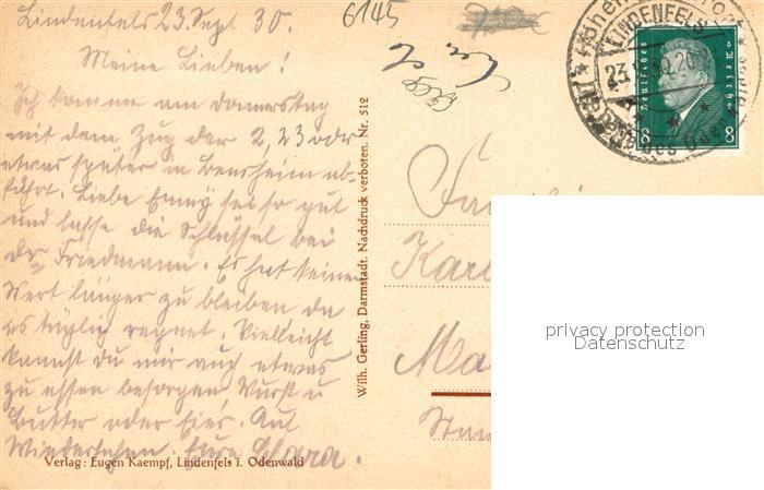 73693517 alte Postkarte Lindenfels Odenwald Burg Lindenfels postalisch gelaufen Erhaltung siehe scans [WerneD78] KatCode: 11110006431015
