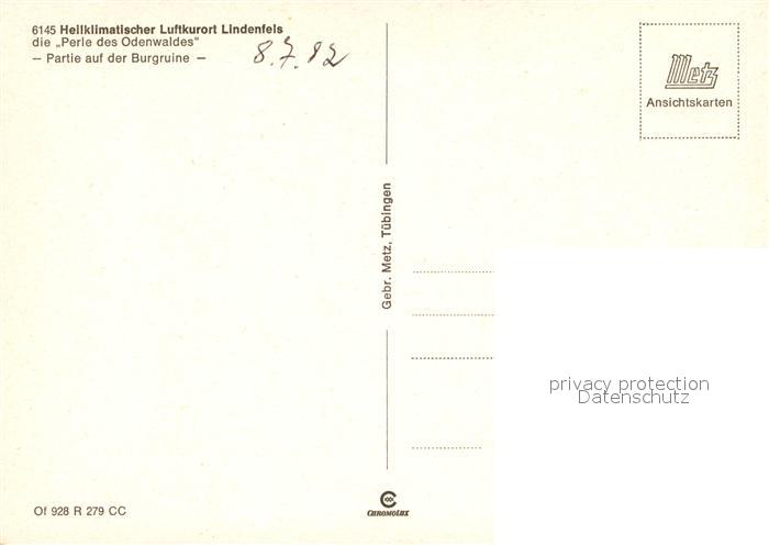 73208114 Lindenfels Odenwald Burgruine postalisch nicht gelaufen Erhaltung siehe scans [WerneD78] KatCode: 11110006431015