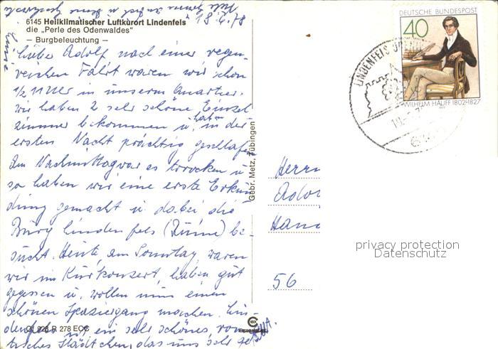 72527329 alte Postkarte Lindenfels Odenwald Dorfbrunnen beleuchtete Burg postalisch gelaufen Erhaltung siehe scans KatCode: 11110006431015