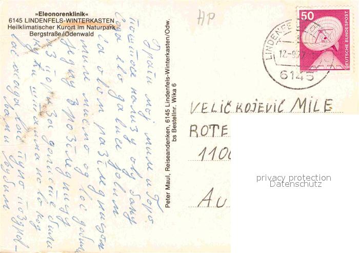 72681983 alte Postkarte Lindenfels Odenwald Eleonorenklinik postalisch gelaufen Erhaltung siehe scans [WerneD78] KatCode: 11110006431015