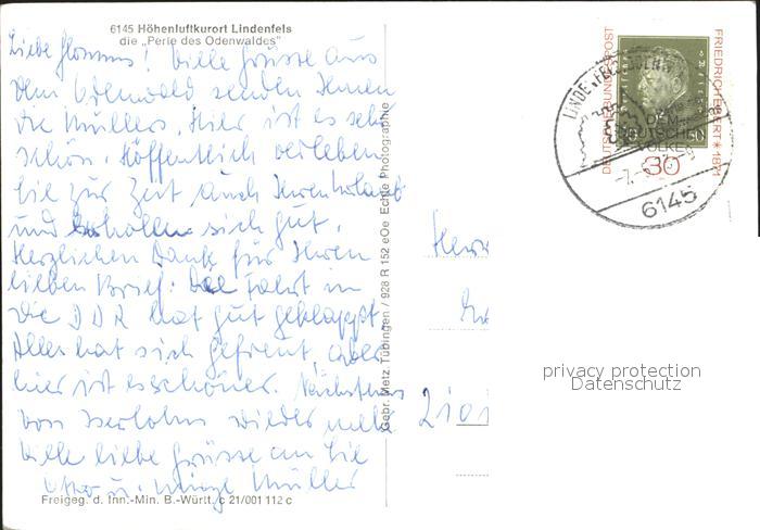 72042961 alte Postkarte Lindenfels Odenwald Fliegeraufnahme postalisch gelaufen KatCode: 11110006431015