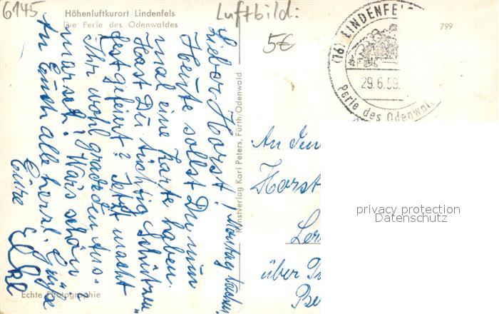 73755166 alte Postkarte Lindenfels Odenwald Fliegeraufnahme postalisch gelaufen Erhaltung siehe scans [LiesaD40] KatCode: 11110006431015