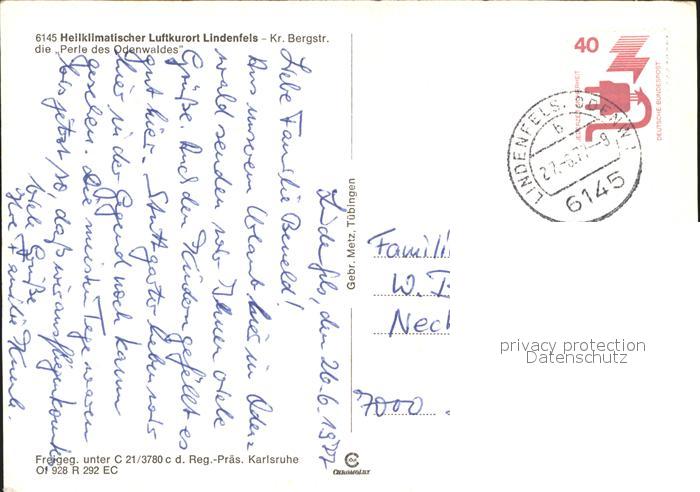 71926924 alte Postkarte Lindenfels Odenwald Fliegeraufnahme Heilklimatischer Luftkurort postalisch gelaufen Erhaltung siehe scans KatCode: 11110006431015
