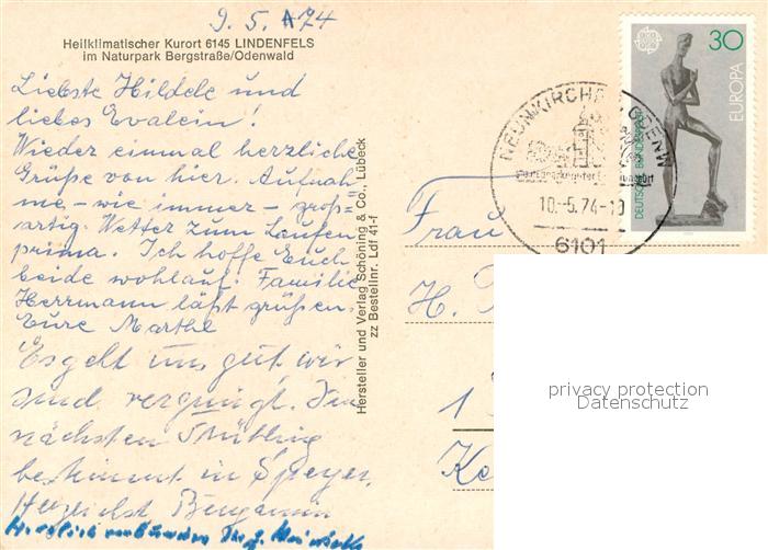 73675085 alte Postkarte Lindenfels Odenwald Fliegeraufnahme mit Schloss postalisch gelaufen Erhaltung siehe scans [WerneD78] KatCode: 11110006431015