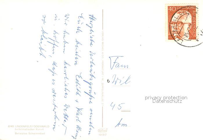 73129336 alte Postkarte Lindenfels Odenwald Freibad beheizt postalisch gelaufen Erhaltung siehe scans [LiesaD40] KatCode: 11110006431015