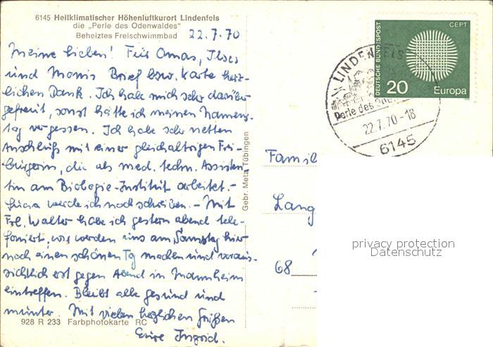 72049058 alte Postkarte Lindenfels Odenwald Freischwimmbad Heilklimatischer Hoehenluftkurort Perle des Odenwaldes postalisch gelaufen KatCode: 11110006431015