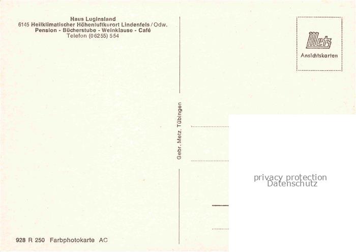 74040442 Lindenfels Odenwald Gaestehaus Pension Weinklaus Café Haus Luginsland postalisch nicht gelaufen Erhaltung siehe scans [FriedD77] KatCode: 11110006431015