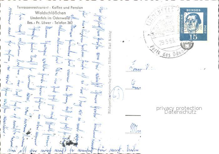 72104705 alte Postkarte Lindenfels Odenwald Gasthaus Pension Waldschloesschen Ortsansicht postalisch gelaufen Erhaltung siehe scans KatCode: 11110006431015