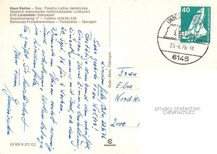 72840294 alte Postkarte Lindenfels Odenwald Haus Karina Schwimmbad postalisch gelaufen Erhaltung siehe scans [WerneD78] KatCode: 11110006431015