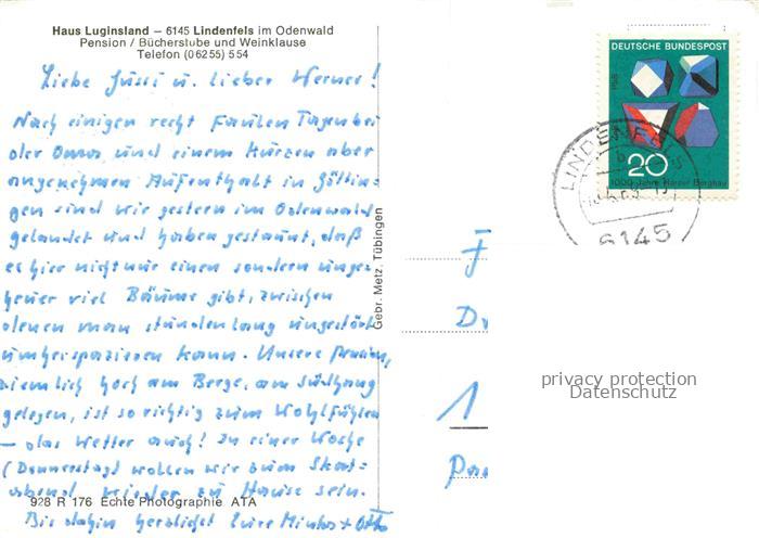 74028047 alte Postkarte Lindenfels Odenwald Haus Luginsland Pension Weinklause postalisch gelaufen Erhaltung siehe scans [WerneD78] KatCode: 11110006431015