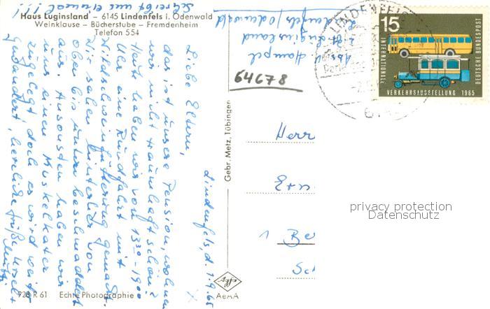 73761990 alte Postkarte Lindenfels Odenwald Haus Luginsland Weinklause postalisch gelaufen Erhaltung siehe scans [WerneD78] KatCode: 11110006431015
