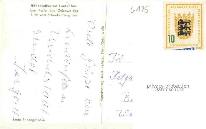 74101599 alte Postkarte Lindenfels Odenwald Hessen Blick vom Schenkenberg postalisch gelaufen Erhaltung siehe scans [WerneD78] KatCode: 11110006431015