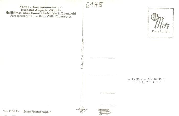 73755157 Lindenfels Odenwald Kaffee-Terrassenrestaurant Kurhotel Auguste Viktoria Aussenansicht postalisch nicht gelaufen Erhaltung siehe scans [LiesaD40] KatCode: 11110006431015